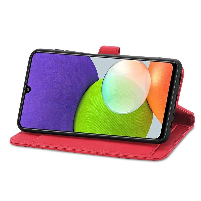 Για Samsung Galaxy A22 4G ανάγλυφο λουλούδι Shockproof δέρμα υπόθεση τηλεφώνου (Κόκκινο)