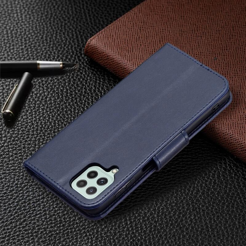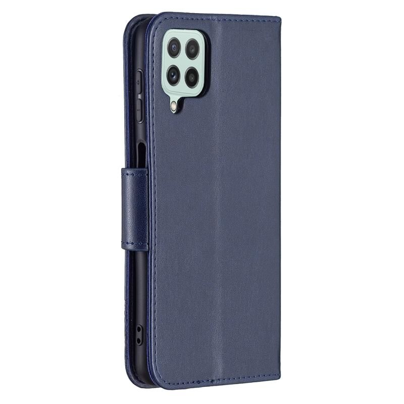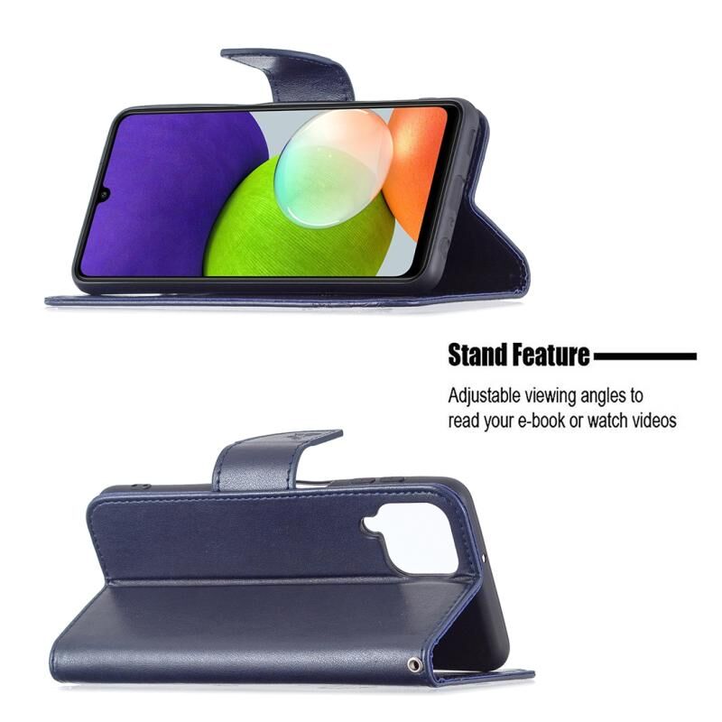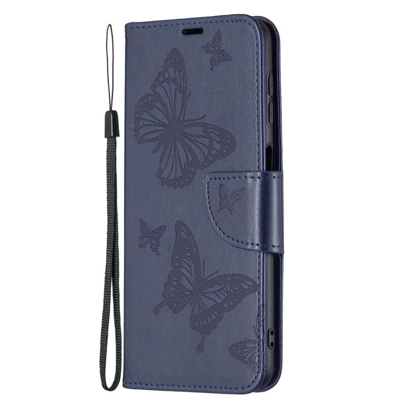 Για το Samsung Galaxy A22 4G ανάγλυφο δύο πεταλούδες μοτίβο οριζόντια Flip δέρμα τηλέφωνο υπόθεση με θήκη & υποδοχή για κάρτες & πορτοφόλι & Lanyard (μπλε)