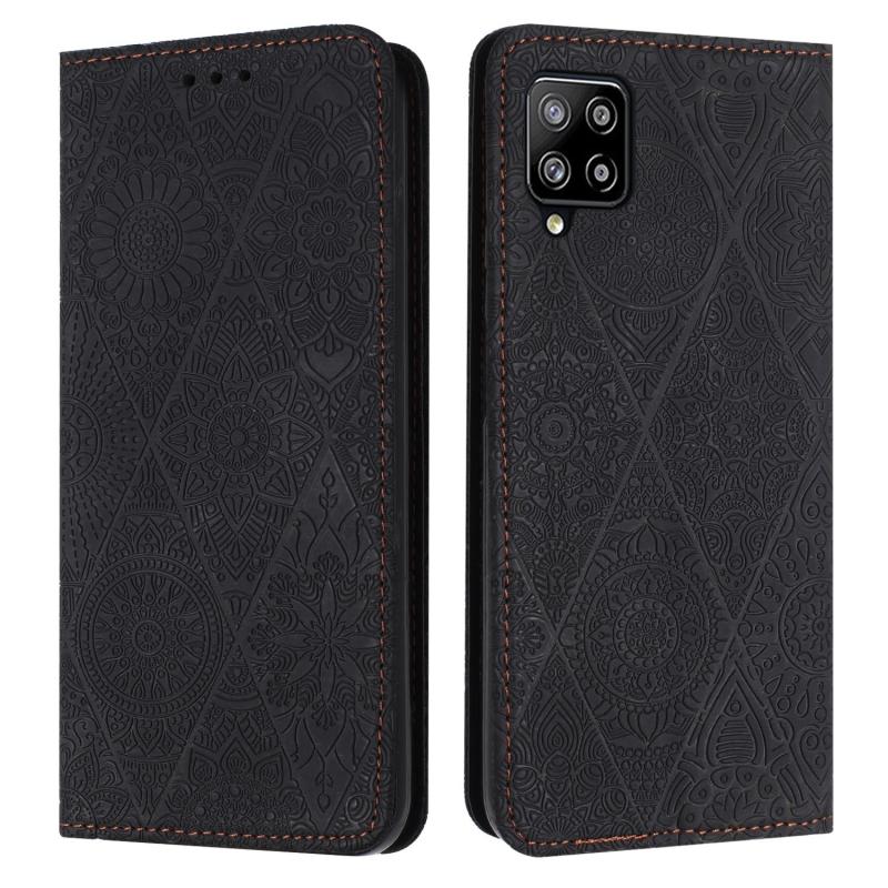 Θήκη τηλεφώνου Samsung Galaxy A22 4G με έθνικ ανάγλυφο σχέδιο και απορροφητικό δέρμα (Μαύρο)
