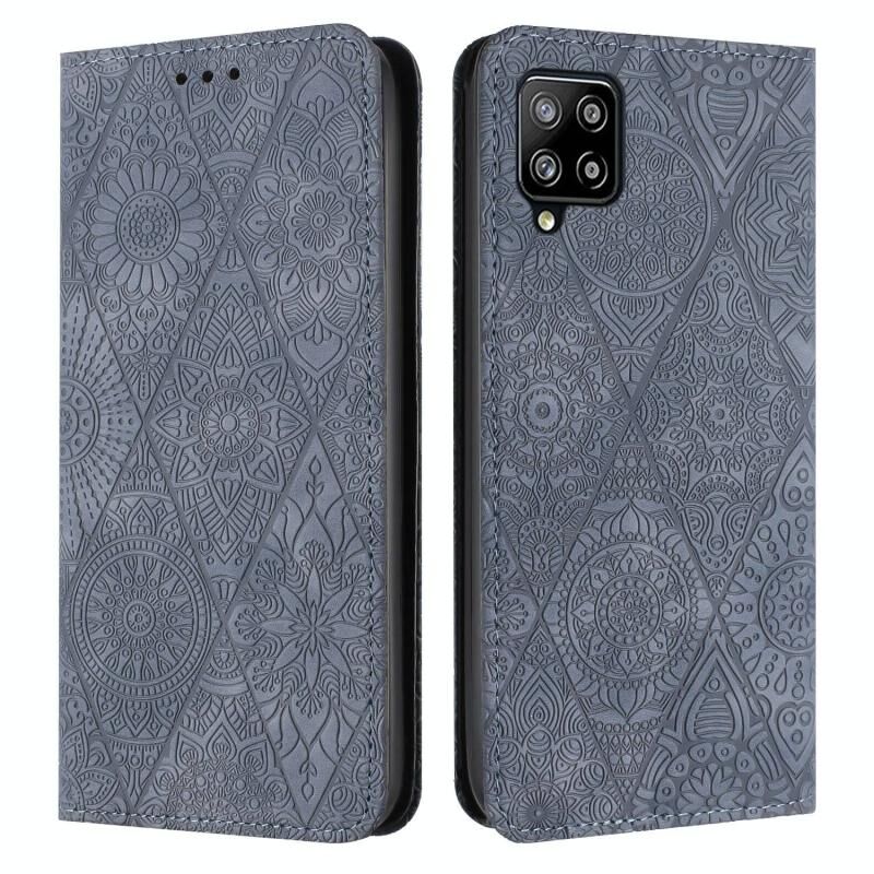 Θήκη τηλεφώνου Samsung Galaxy A22 4G με έθνικ ανάγλυφο σχέδιο και απορροφητικό δέρμα (Γκρι)
