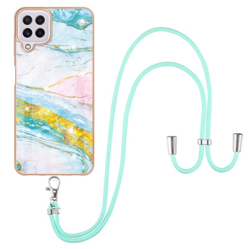 Θήκη για Samsung Galaxy A22 4G EU Version 158mm με Επικάλυψη Μαρμάρου IMD TPU Αντικραδασμική με Λουρί Λαιμού (Μωβ 002)