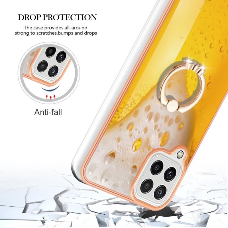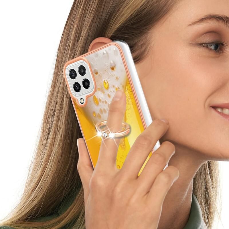 Θήκη τηλεφώνου με δακτύλιο στήριξης για Samsung Galaxy A22 4G EU Version, με ηλεκτρολυτική επιμετάλλωση και διπλής όψης IMD (Draft Beer)