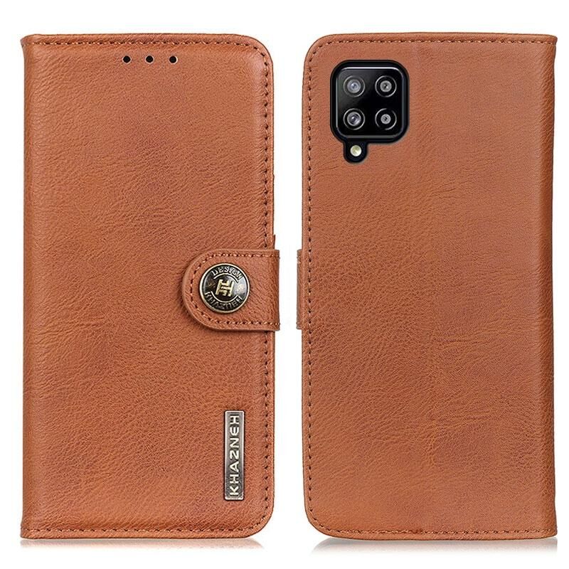 Για Samsung Galaxy A22 4G (έκδοση ΕΕ) KHAZNEH Cowhide Υφή οριζόντια Flip δερμάτινη θήκη με υποδοχές για κάρτες και πορτοφόλι (καφέ)