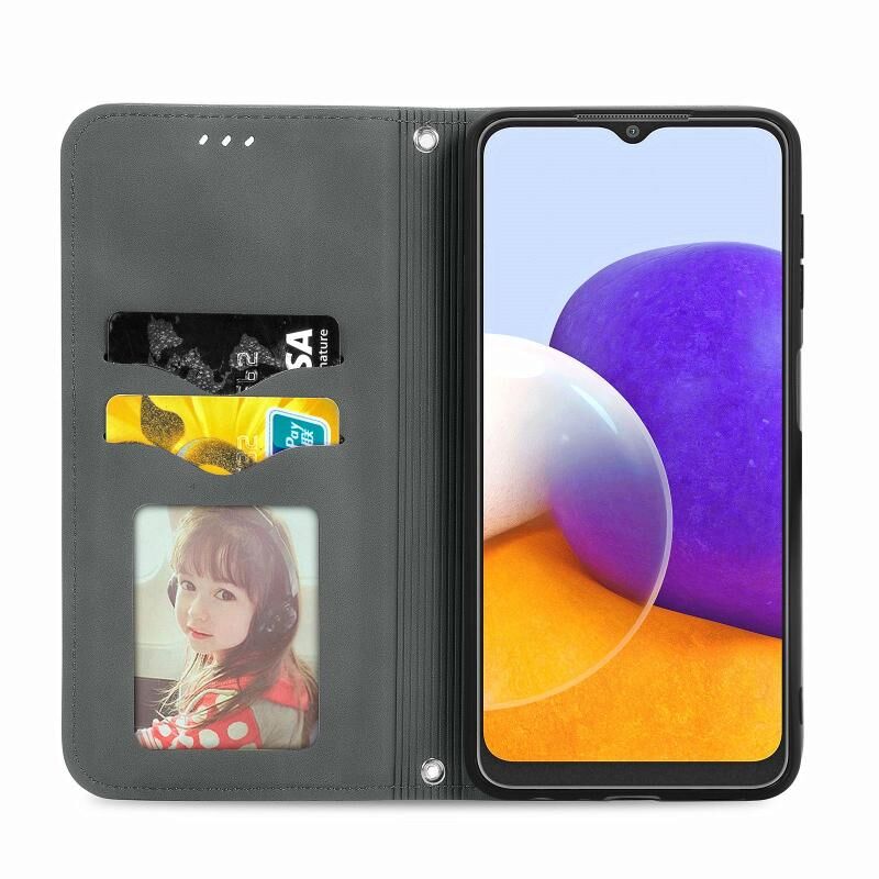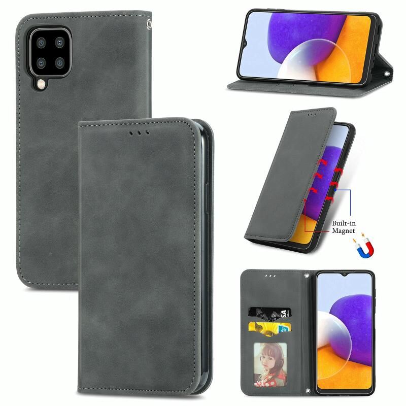 Για το Samsung Galaxy A22 4G (έκδοση ΕΕ) Ρετρό δέρμα αίσθηση Business μαγνητική οριζόντια Flip δερμάτινη θήκη με κάτοχο & υποδοχές καρτών & πορτοφόλι & πλαίσιο φωτογραφιών (γκρι)