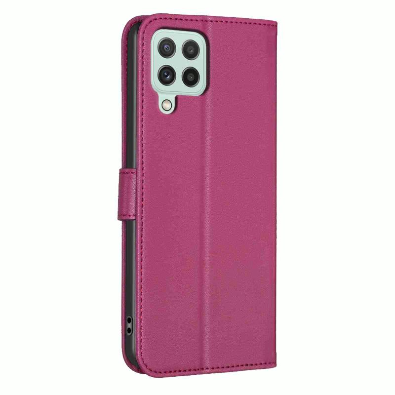 For Samsung Galaxy A22 4G Four-leaf Embossed Leather Phone Case(Rose Red)