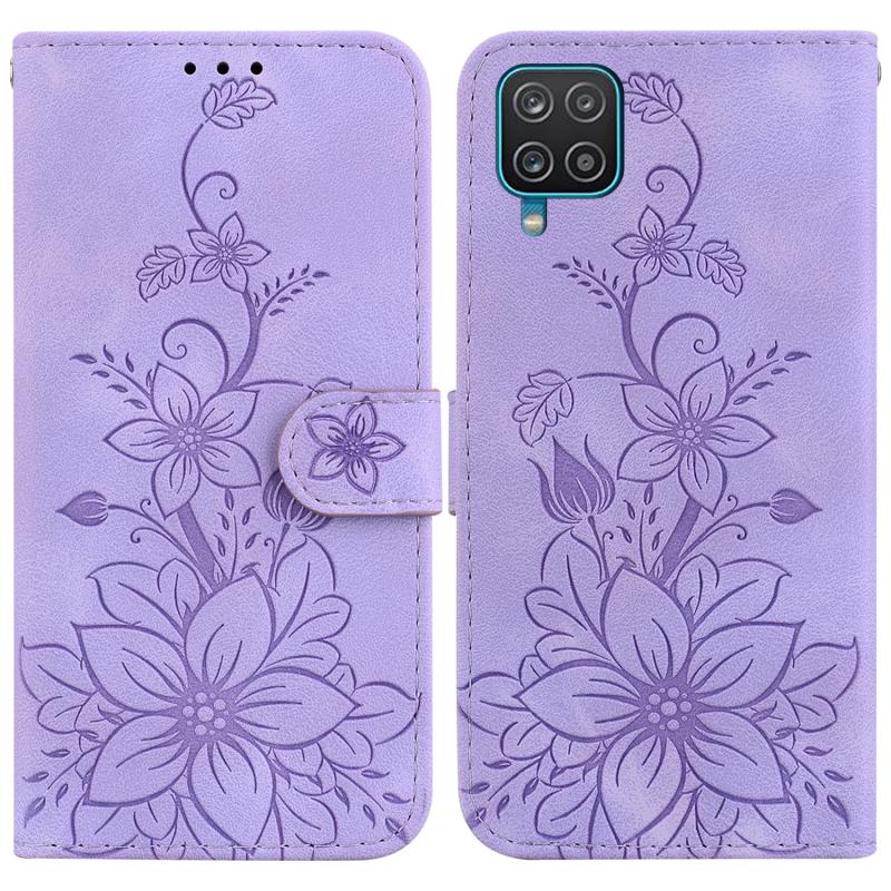 For Samsung Galaxy A22 4G Lily Embossed Leather Phone Case(Purple)