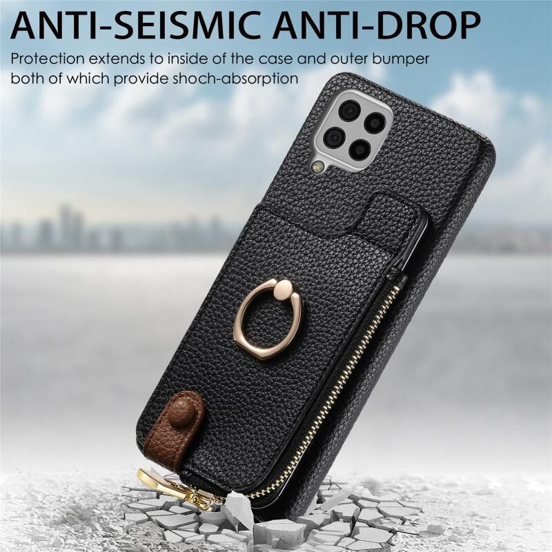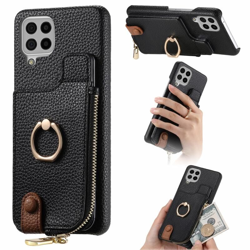 Για Samsung Galaxy A22 4G Litchi δέρμα λάδι Edge δαχτυλίδι φερμουάρ πορτοφόλι πίσω υπόθεση τηλεφώνου (μαύρο)