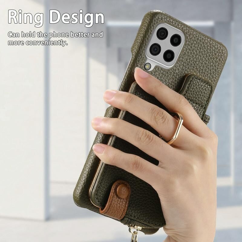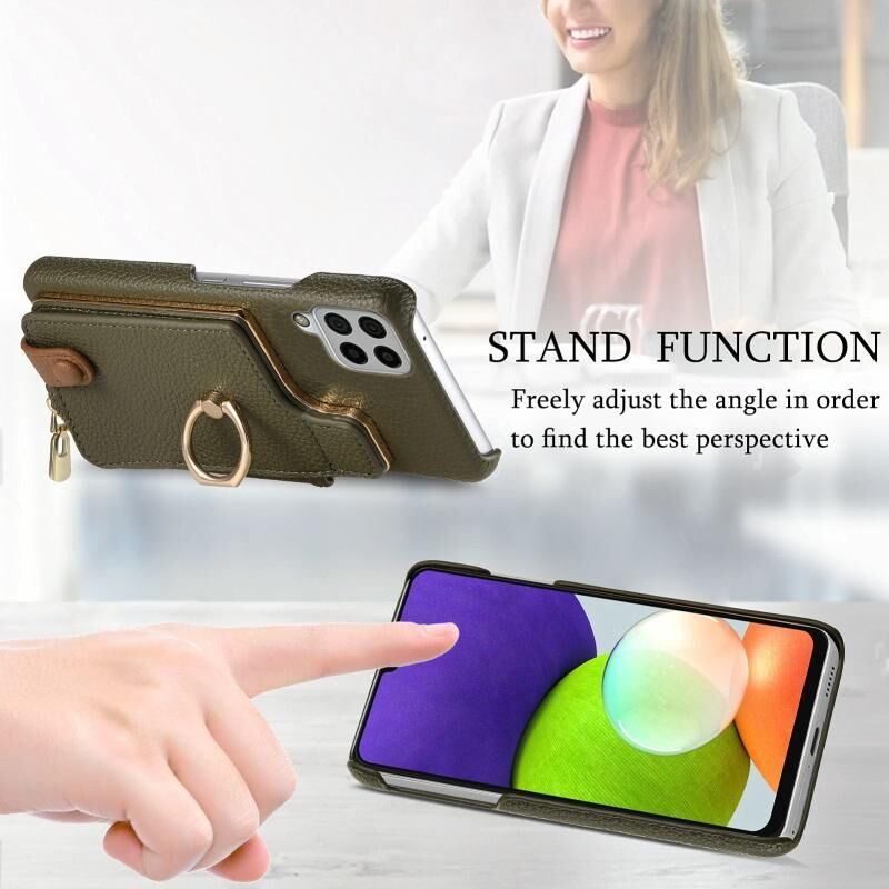 Για Samsung Galaxy A22 4G Litchi δέρμα λάδι Edge δαχτυλίδι φερμουάρ πορτοφόλι πίσω υπόθεση τηλεφώνου (πράσινο)