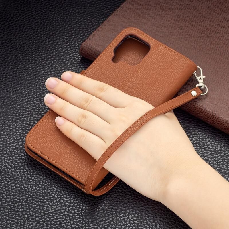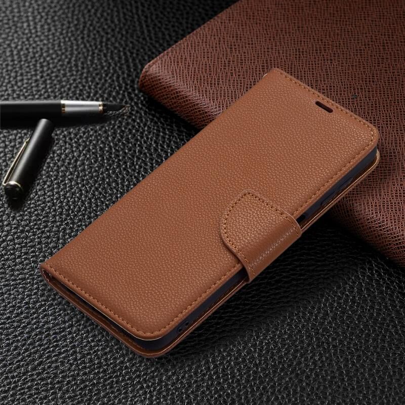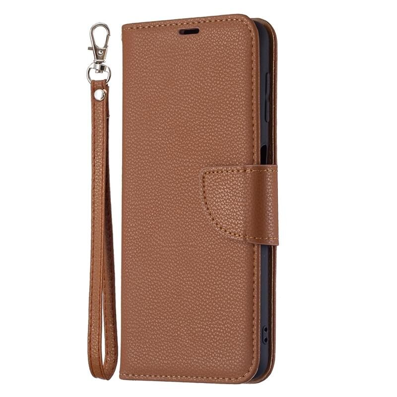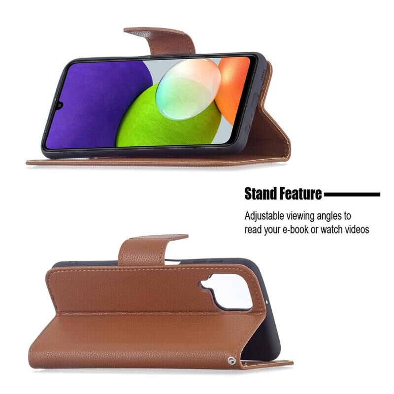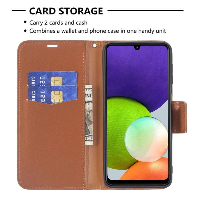 Για Samsung Galaxy A22 4G Litchi υφή καθαρό χρώμα οριζόντια Flip δερμάτινη θήκη τηλεφώνου με θήκη & υποδοχές για κάρτες & πορτοφόλι & κορδόνι (καφέ)