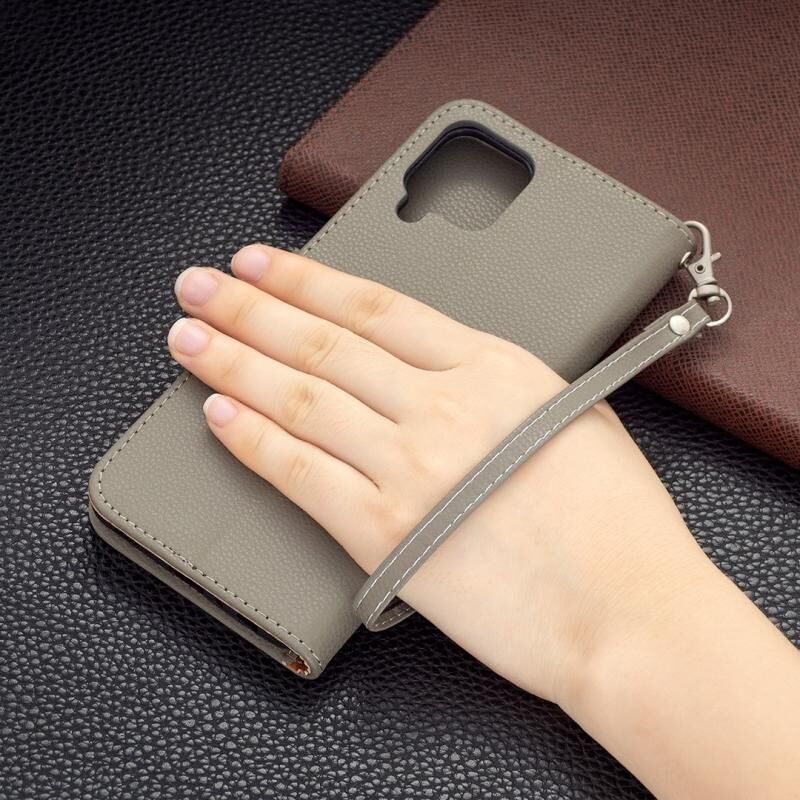 Για Samsung Galaxy A22 4G Litchi Υφή καθαρό χρώμα οριζόντια Flip δερμάτινη θήκη τηλεφώνου με θήκη & υποδοχές για κάρτες & πορτοφόλι & κορδόνι (γκρι)