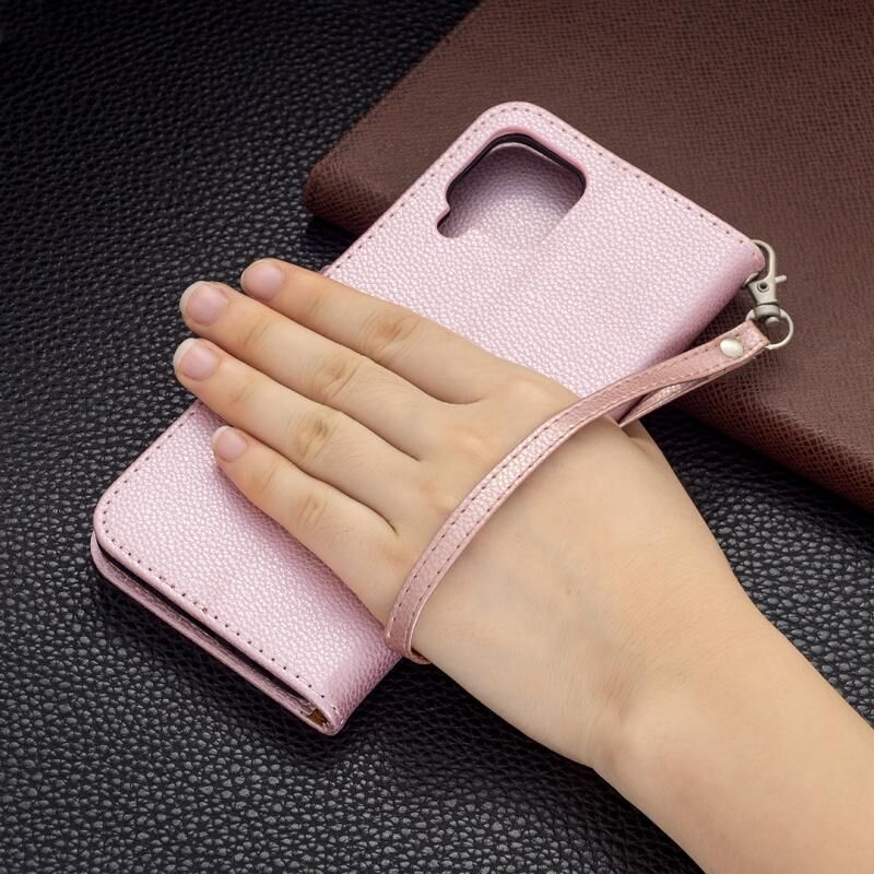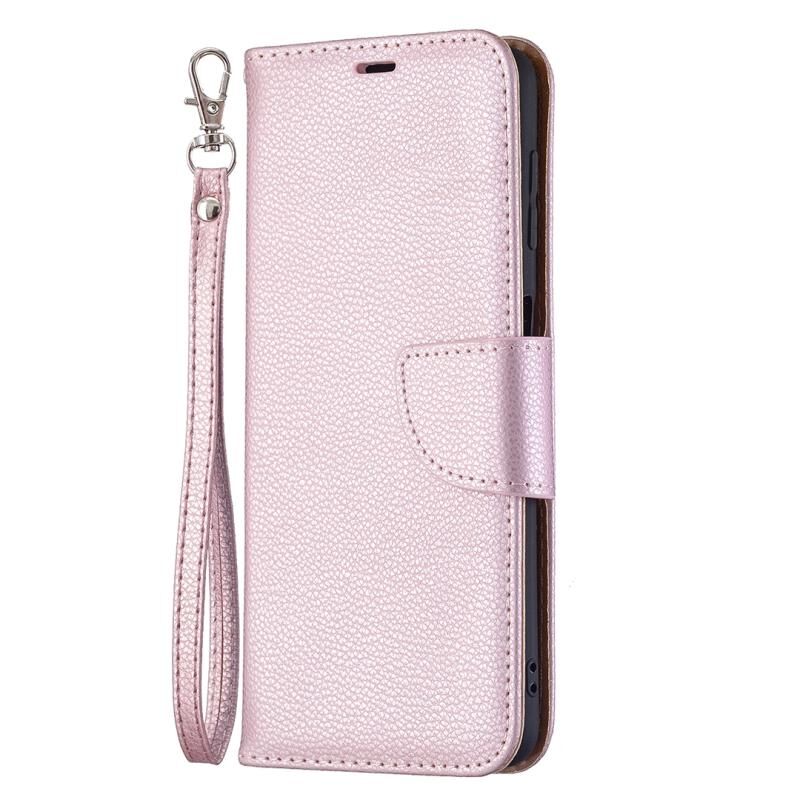 Για Samsung Galaxy A22 4G Litchi Υφή καθαρό χρώμα οριζόντια Flip δερμάτινη θήκη τηλεφώνου με θήκη & υποδοχές για κάρτες & πορτοφόλι & κορδόνι (Rose Gold)