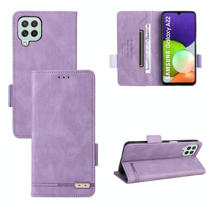 Για Samsung Galaxy A22 4G Μαγνητικό κούμπωμα Δερμάτινη θήκη τηλεφώνου (μωβ)