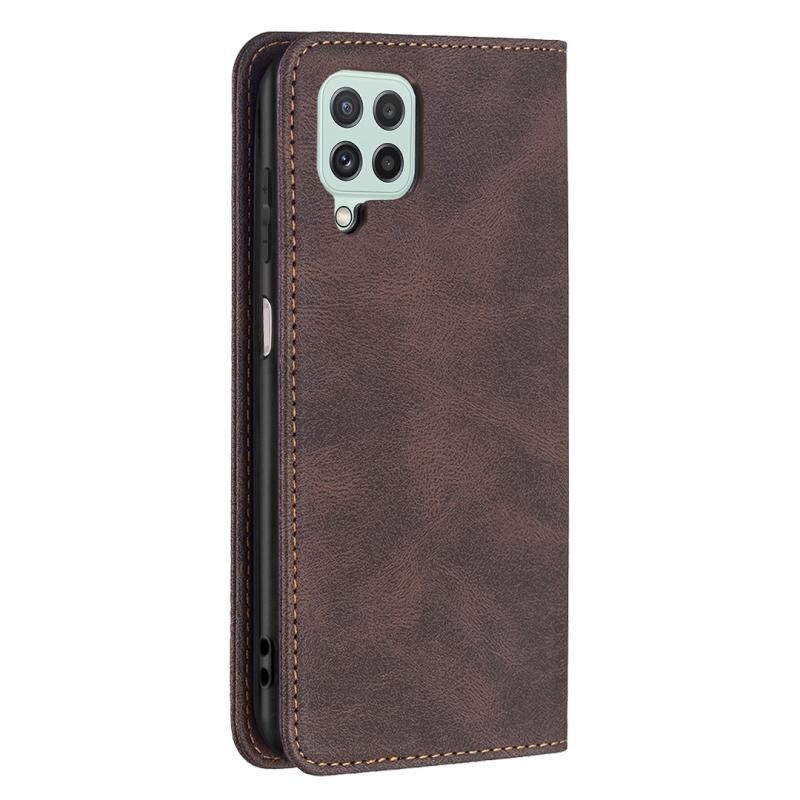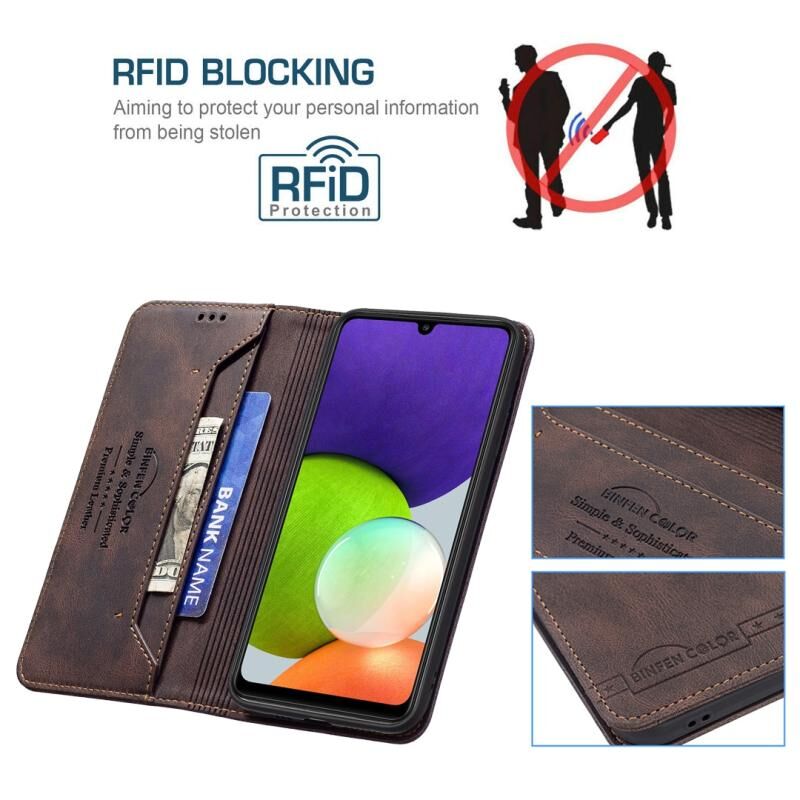 Για Samsung Galaxy A22 4G Μαγνητικό μπλοκάρισμα RFID Anti-Theft Δερμάτινη θήκη με θήκη & υποδοχές για κάρτες & πορτοφόλι (Καφέ)