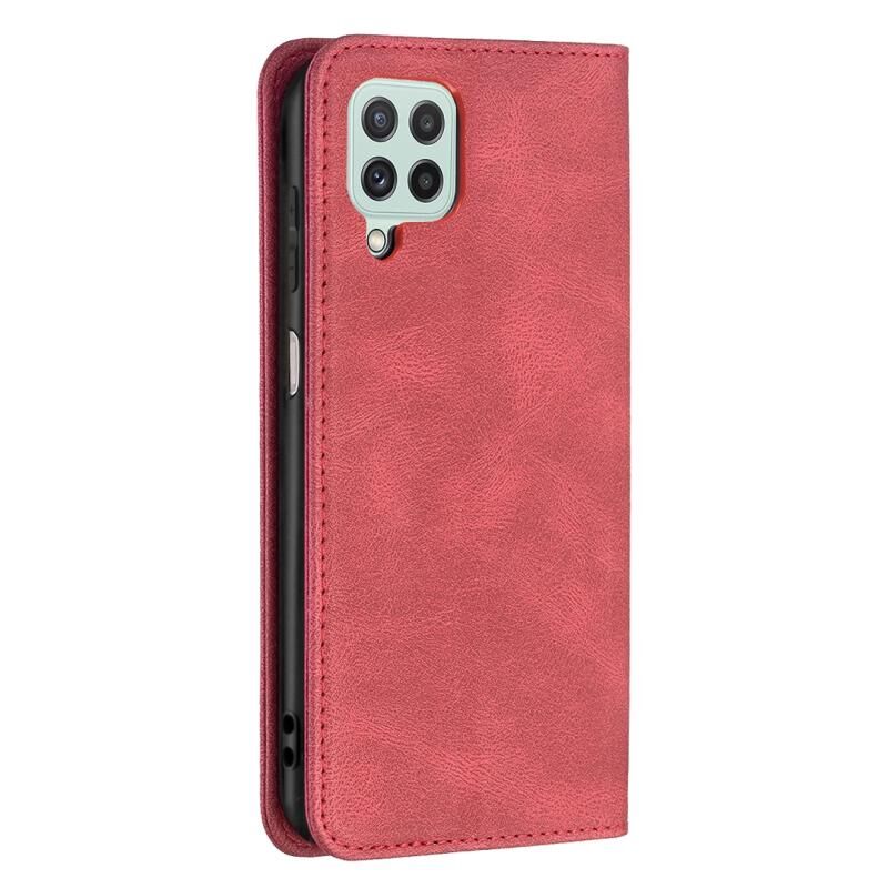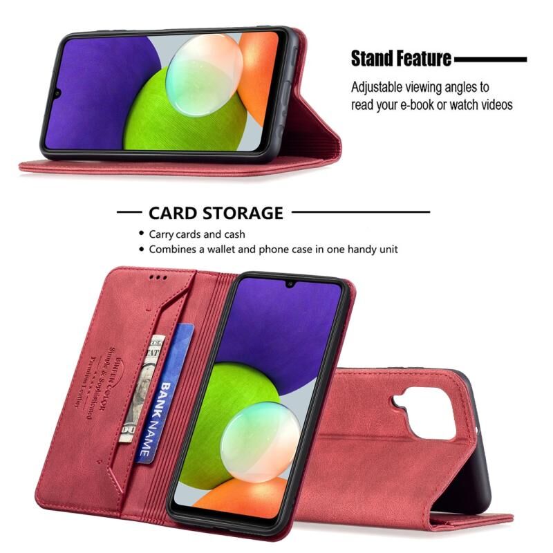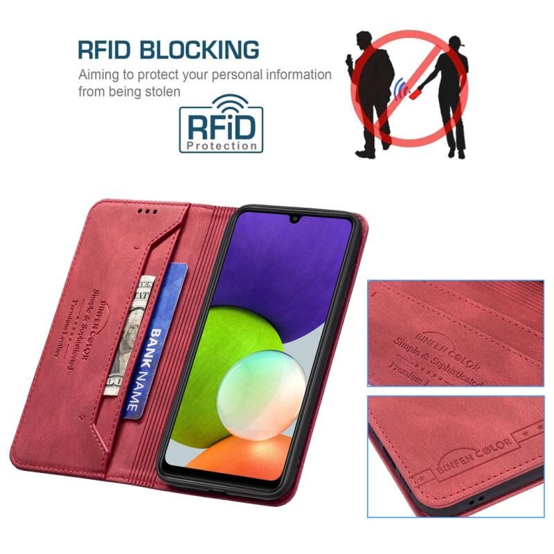 Για Samsung Galaxy A22 4G Μαγνητικό μπλοκάρισμα RFID Anti-Theft Δερμάτινη θήκη με θήκη & υποδοχές για κάρτες & πορτοφόλι(Κόκκινο)