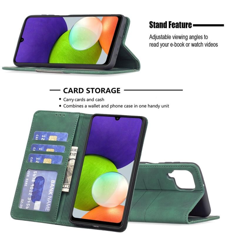 Για Samsung Galaxy A22 4G Μαγνητική θήκη τηλεφώνου με δερμάτινη επένδυση (πράσινο)