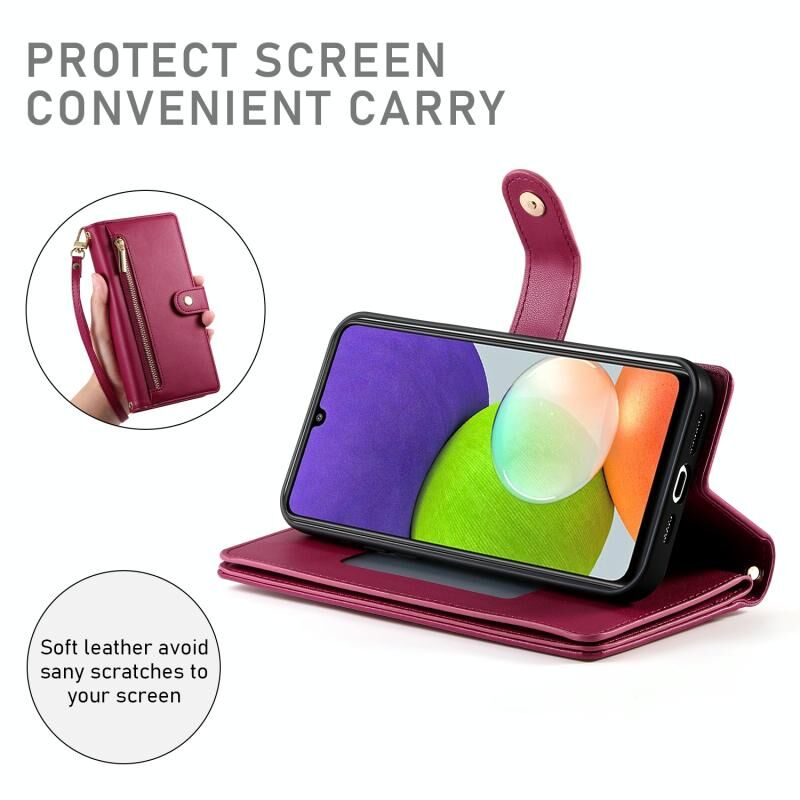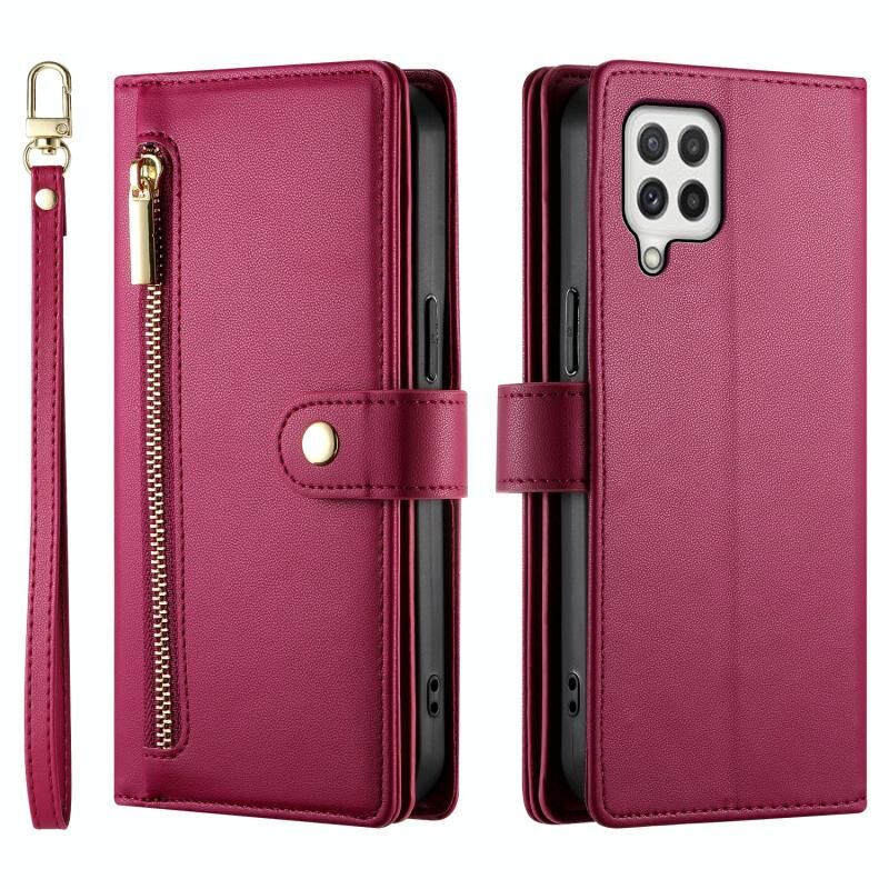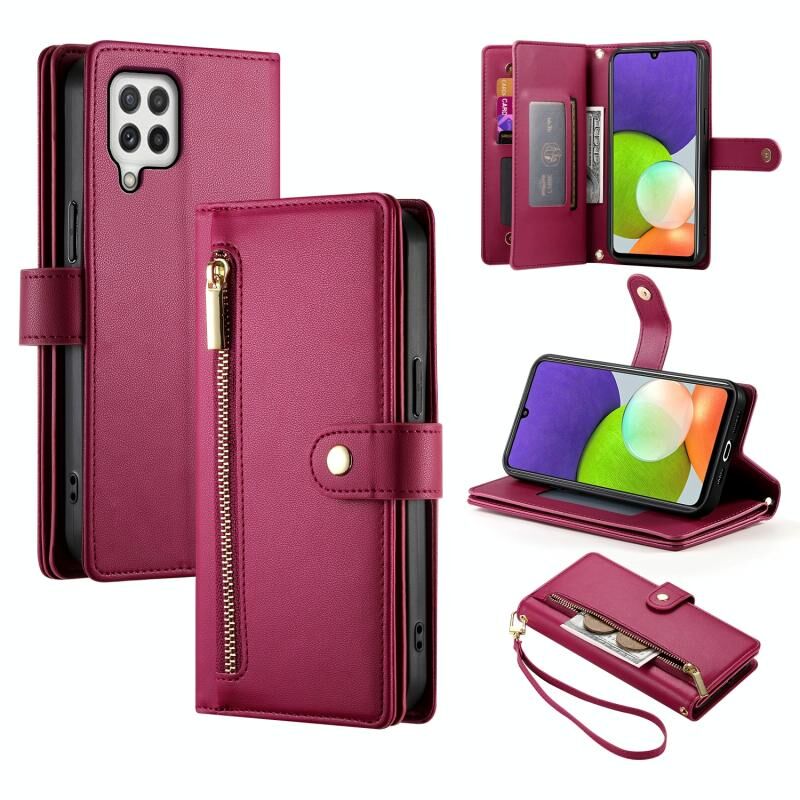 Για Samsung Galaxy A22 4G Nine Card-slot φερμουάρ πορτοφόλι τσάντα δερμάτινη θήκη τηλεφώνου (κόκκινο)