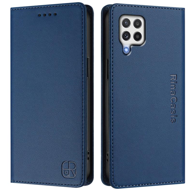 For Samsung Galaxy A22 4G RC01 Dual-Folded Magnetic Suction RFID Leather Phone Case(Dark Blue)