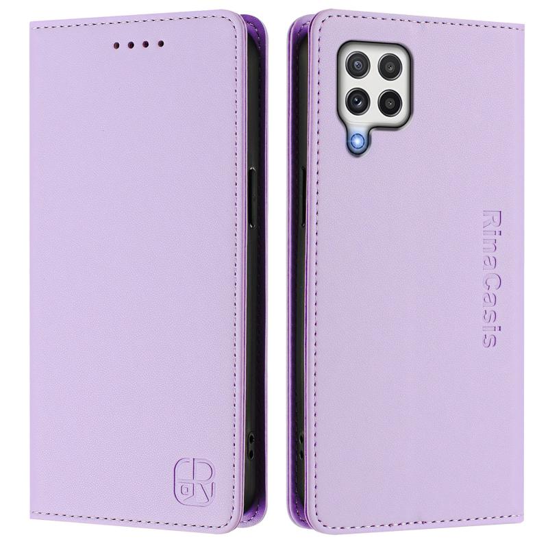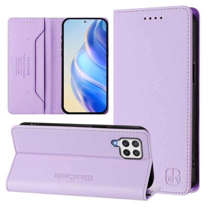For Samsung Galaxy A22 4G RC01 Dual-Folded Magnetic Suction RFID Leather Phone Case(Light Purple)