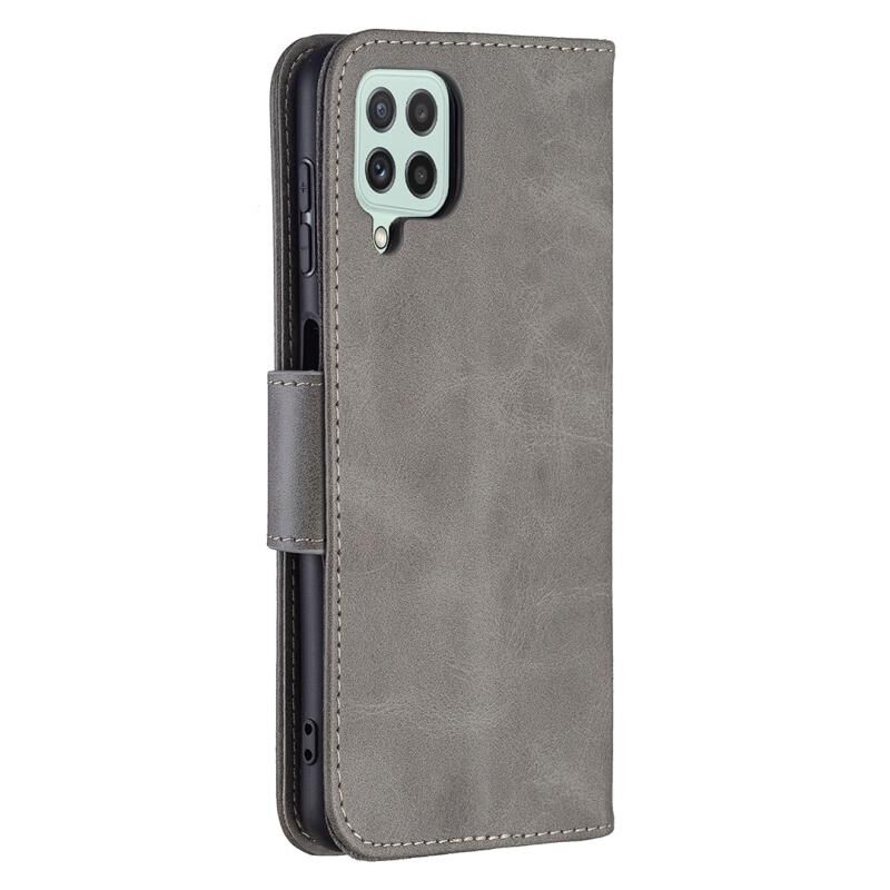 Για Samsung Galaxy A22 4G Retro Lambskin υφή καθαρό χρώμα οριζόντια Flip δέρμα τηλέφωνο υπόθεση με θήκη & υποδοχές για κάρτες & πορτοφόλι & Lanyard (γκρι)