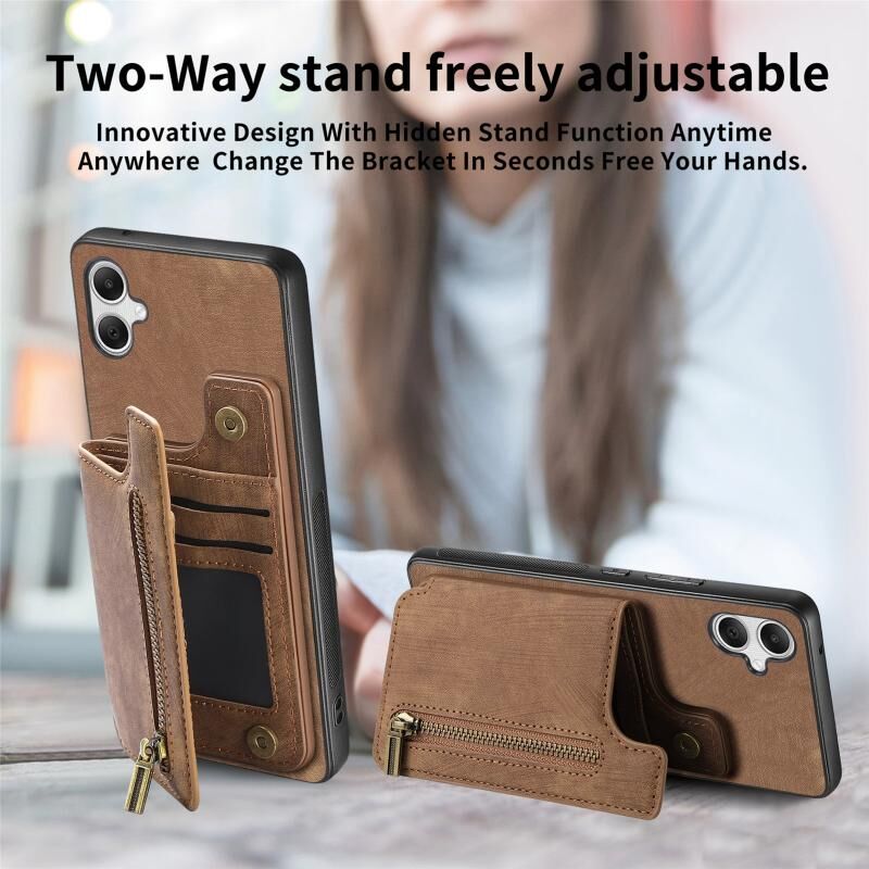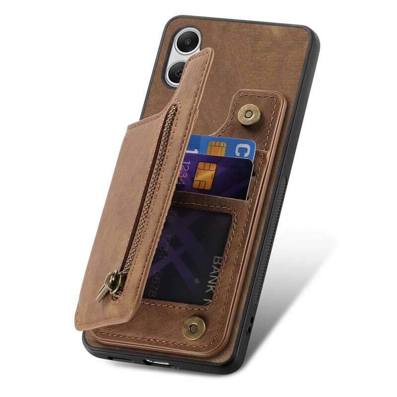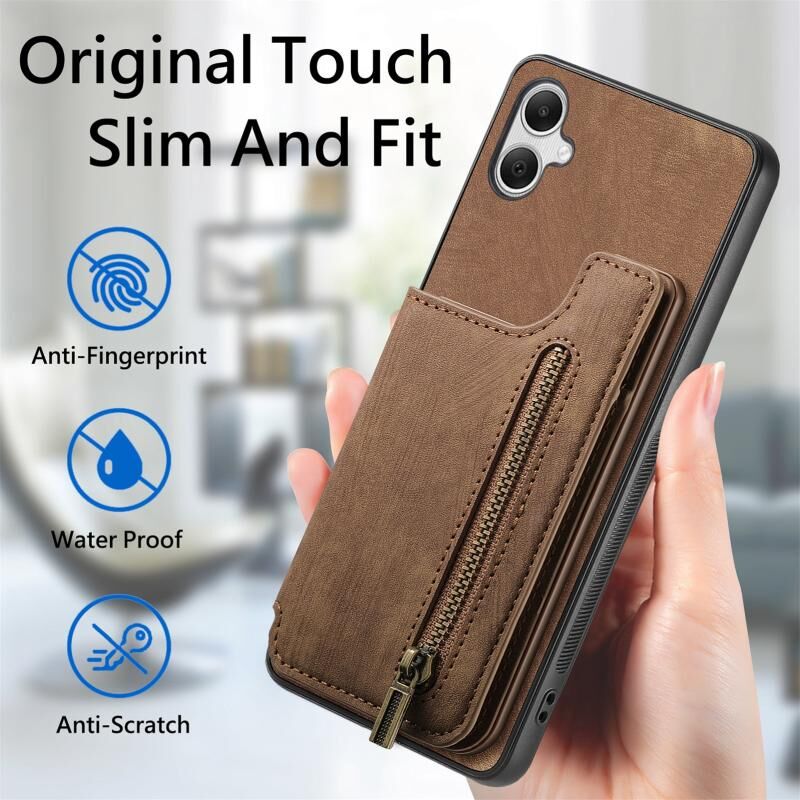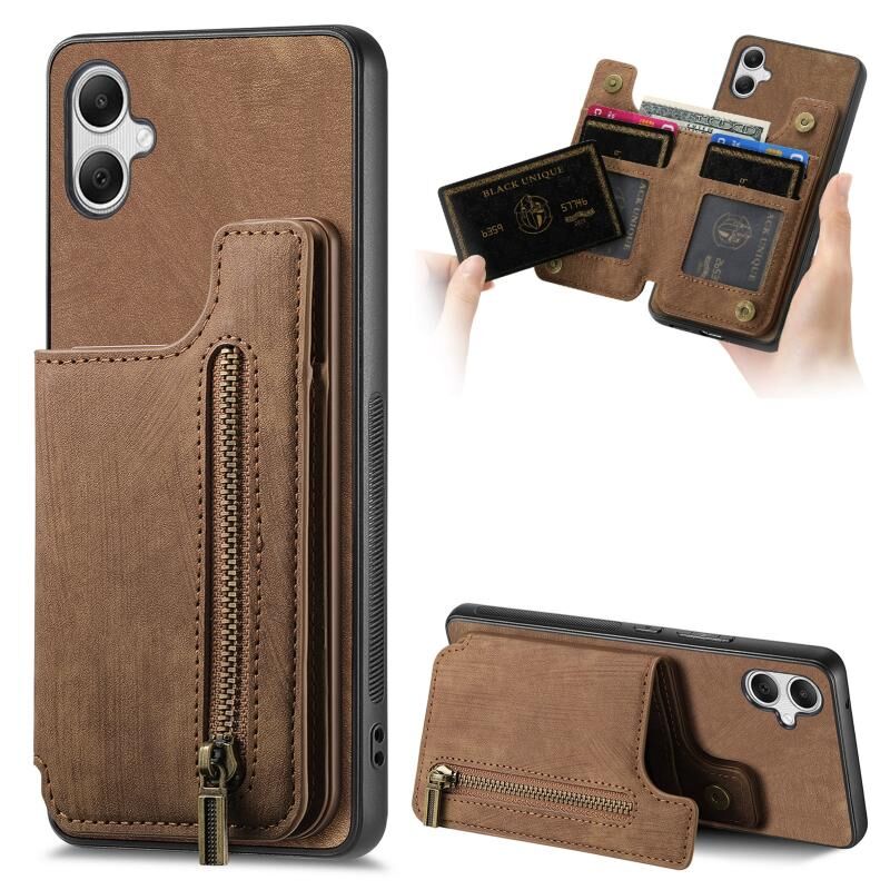 Για Samsung Galaxy A22 4G Ρετρό δέρμα φερμουάρ πορτοφόλι πίσω θήκη τηλεφώνου (καφέ)