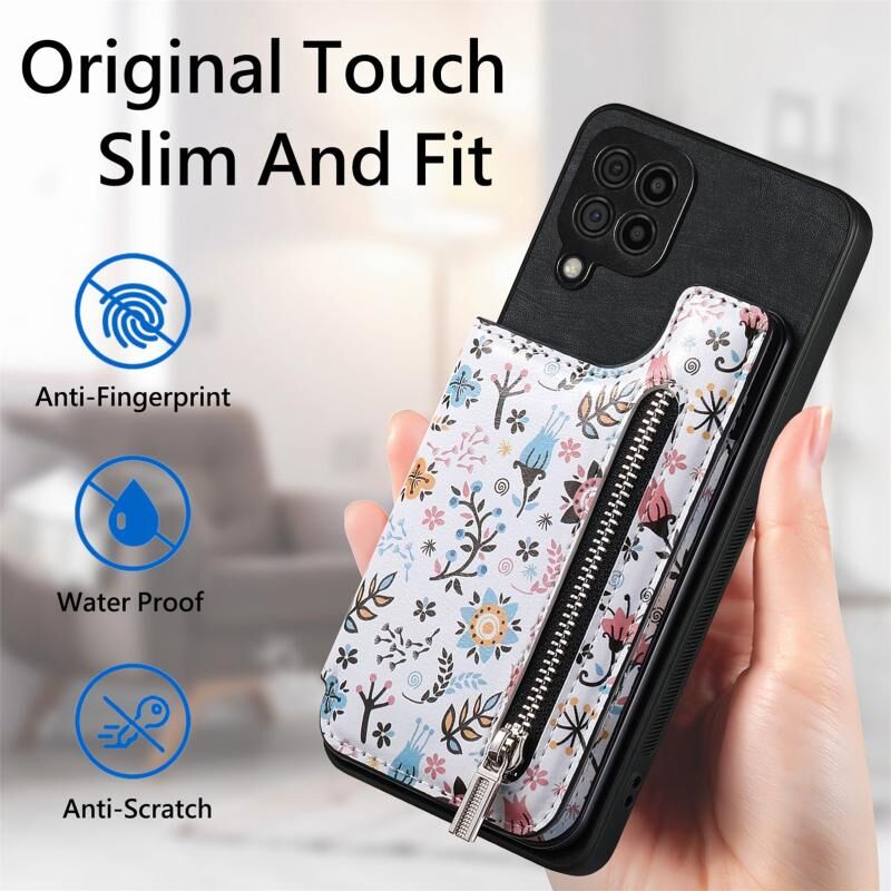 Θήκη κινητού τηλεφώνου Samsung Galaxy A22 4G με σχέδιο retro, φερμουάρ και θήκη πορτοφολιού (Μαύρο)