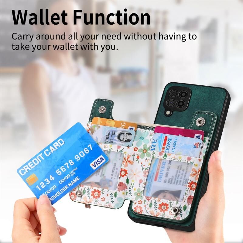 2. Λειτουργία πορτοφολιού: Η δερμάτινη θήκη είναι εξοπλισμένη με υποδοχές για κάρτες και ένα μικρό ποσό μετρητών.