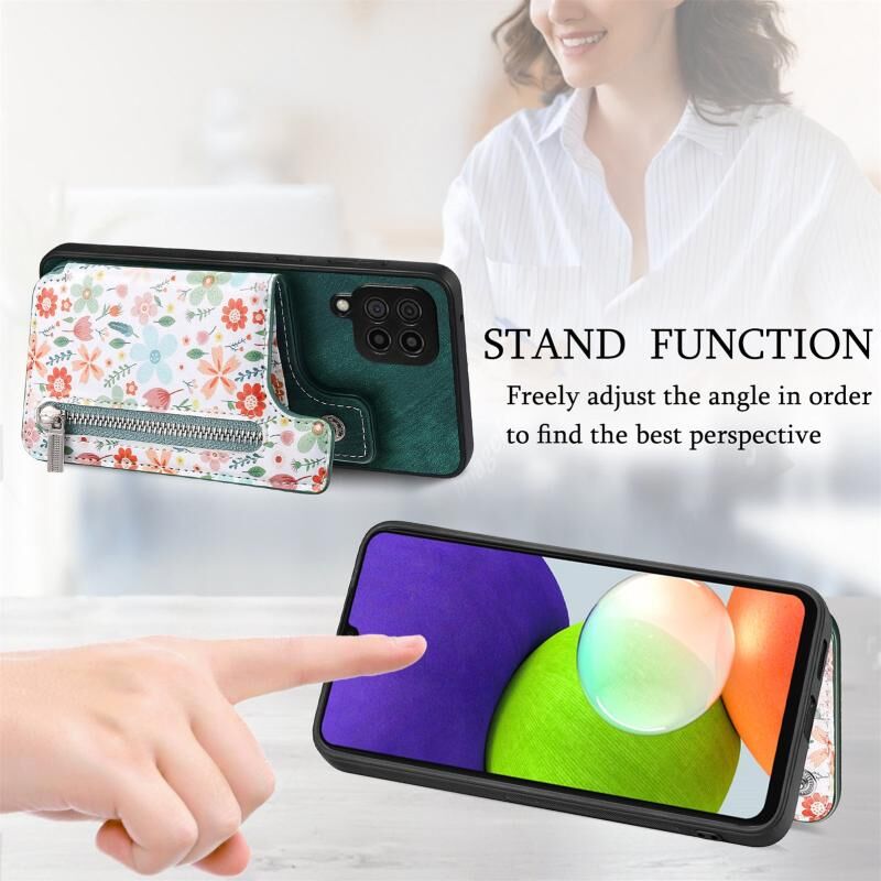 Θήκη κινητού τηλεφώνου Samsung Galaxy A22 4G με σχέδιο retro, φερμουάρ και θήκη πορτοφολιού (Μαύρο)