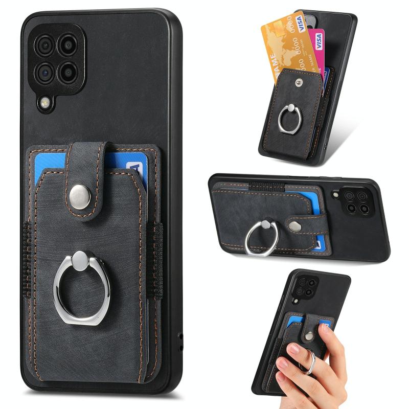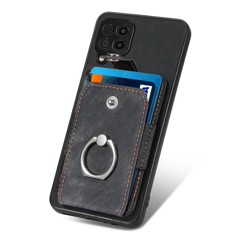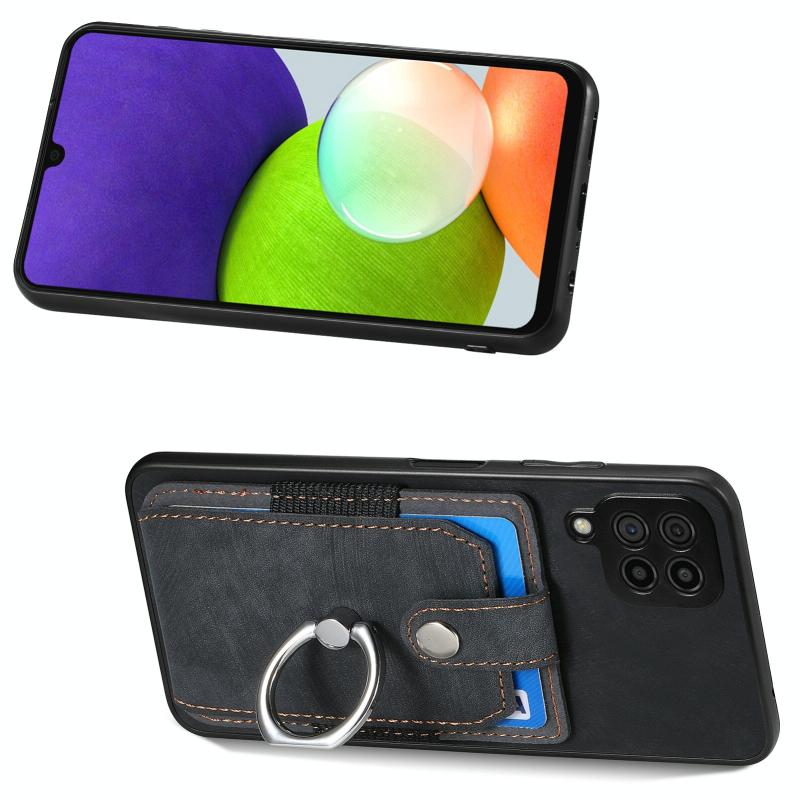 For Samsung Galaxy A22 4G Retro Skin-feel Ring Card Wallet Phone Case(Black)