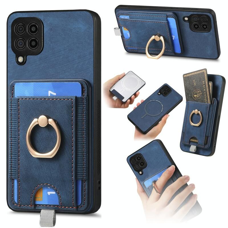 Για Samsung Galaxy A22 4G Retro Splitable μαγνητική τσάντα κάρτα τσάντα δέρμα υπόθεση τηλεφώνου (μπλε)