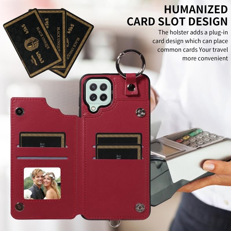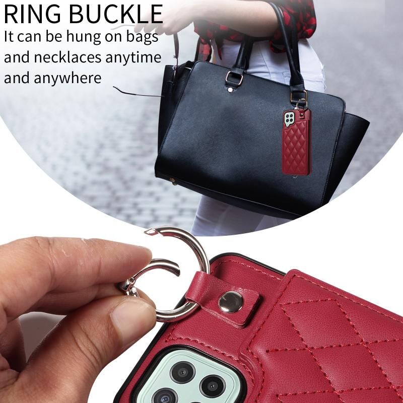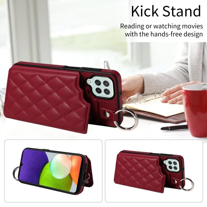Για Samsung Galaxy A22 4G Rhombic υφή κάρτα τσάντα θήκη τηλεφώνου με κοντό κορδόνι (κόκκινο κρασί)