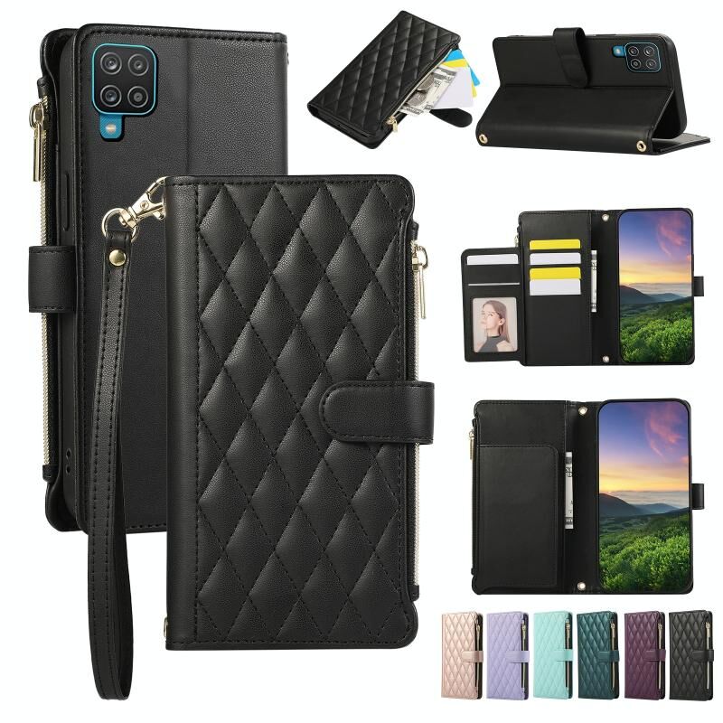 Θήκη τηλεφώνου Samsung Galaxy A22 4G, Δερμάτινη με φερμουάρ και ρόμβους (Μωβ)
