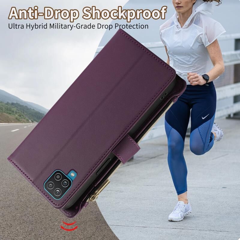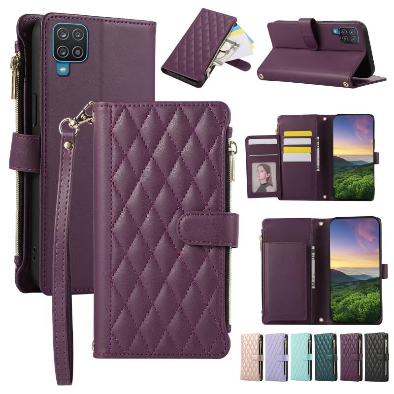 Θήκη τηλεφώνου Samsung Galaxy A22 4G, Δερμάτινη με φερμουάρ και ρόμβους (Μωβ)