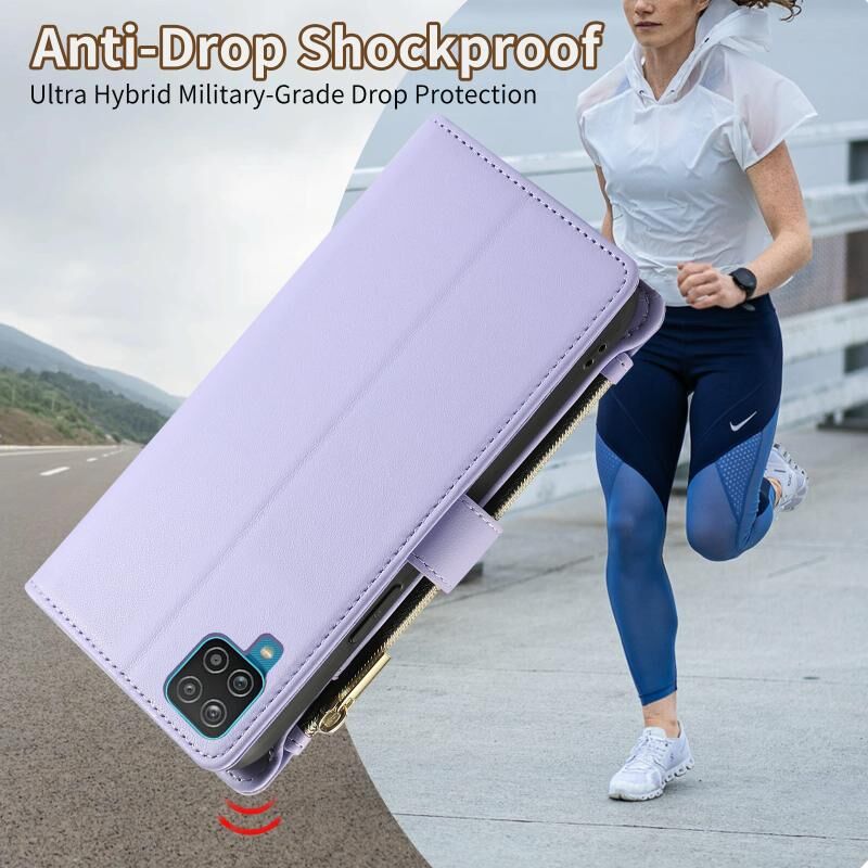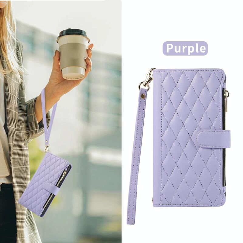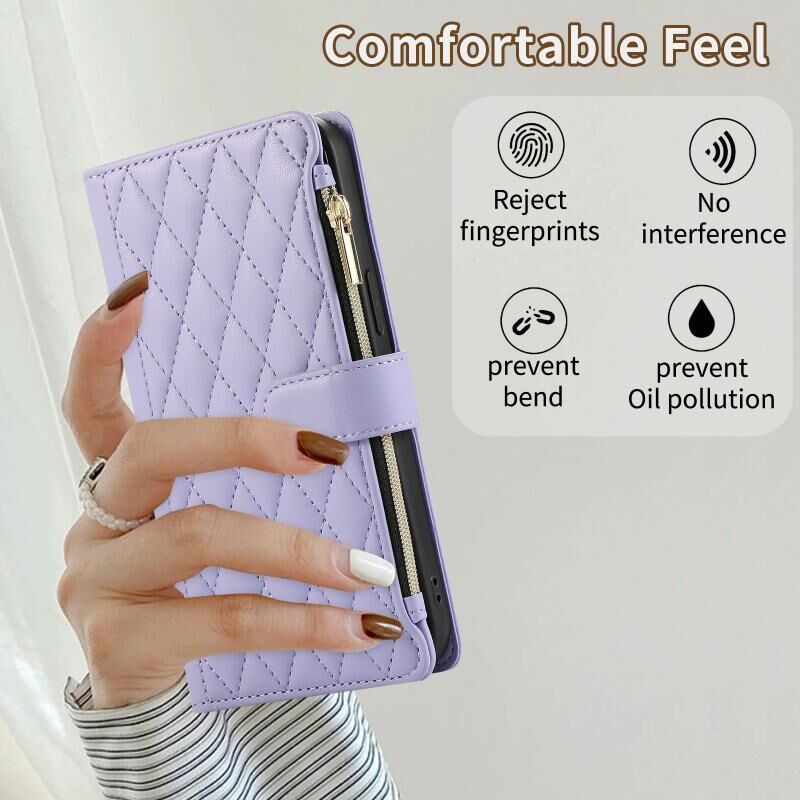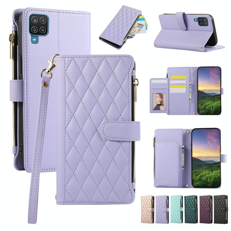 Θήκη τηλεφώνου Samsung Galaxy A22 4G, Δερμάτινη με φερμουάρ και ρόμβους (Μωβ)