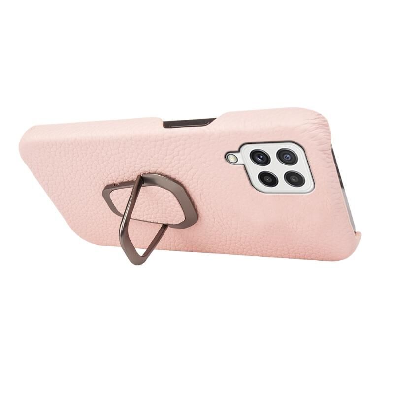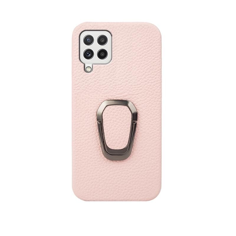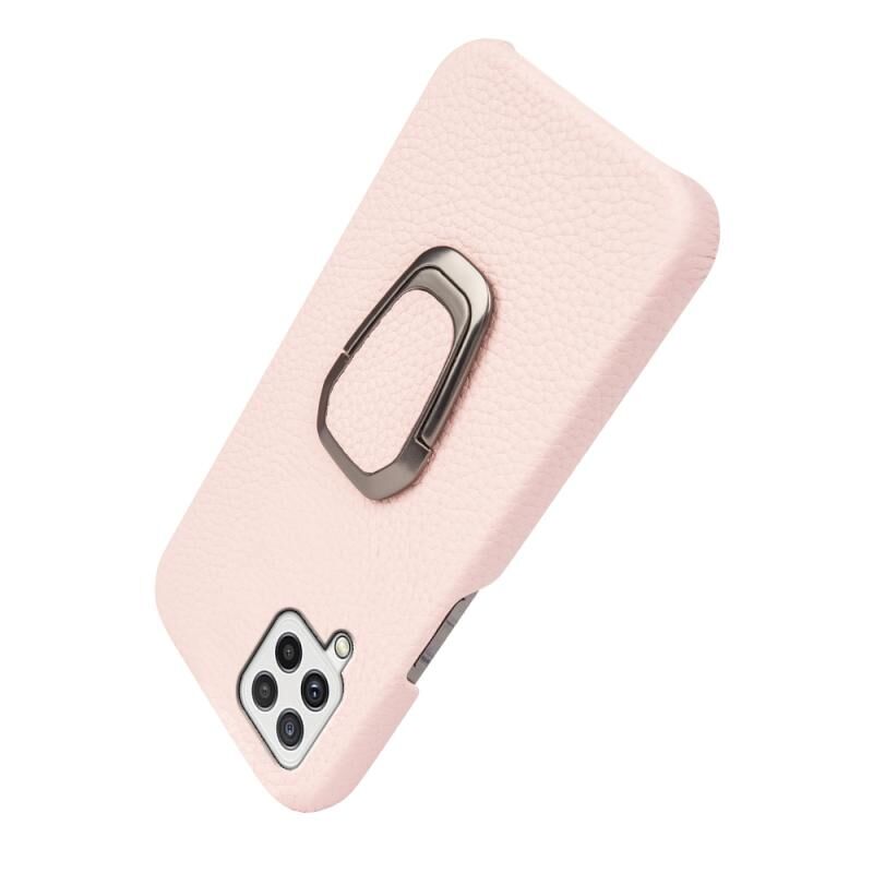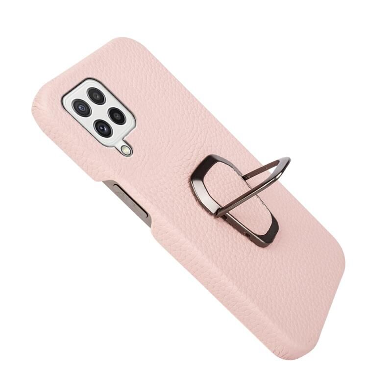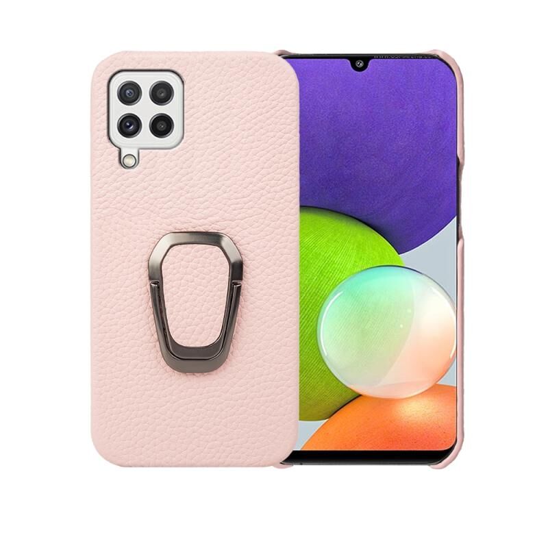 Θήκη κινητού τηλεφώνου Samsung Galaxy A22 4G με δακτύλιο και γνήσιο δέρμα υφής λύτσι (Μαύρο)