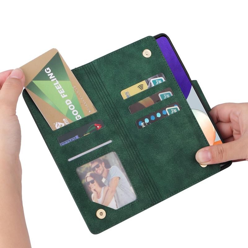 Για Samsung Galaxy A22 4G Rivet πόρπη 9 κάρτες τρεις φορές δερμάτινη θήκη τηλεφώνου (πράσινο)