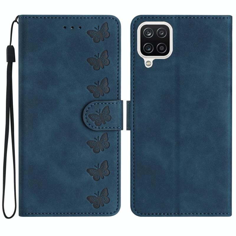 Θήκη τηλεφώνου Samsung Galaxy A22 4G Seven Butterflies Embossed Leather (Μπλε)