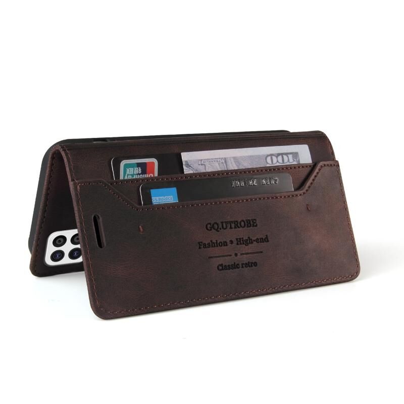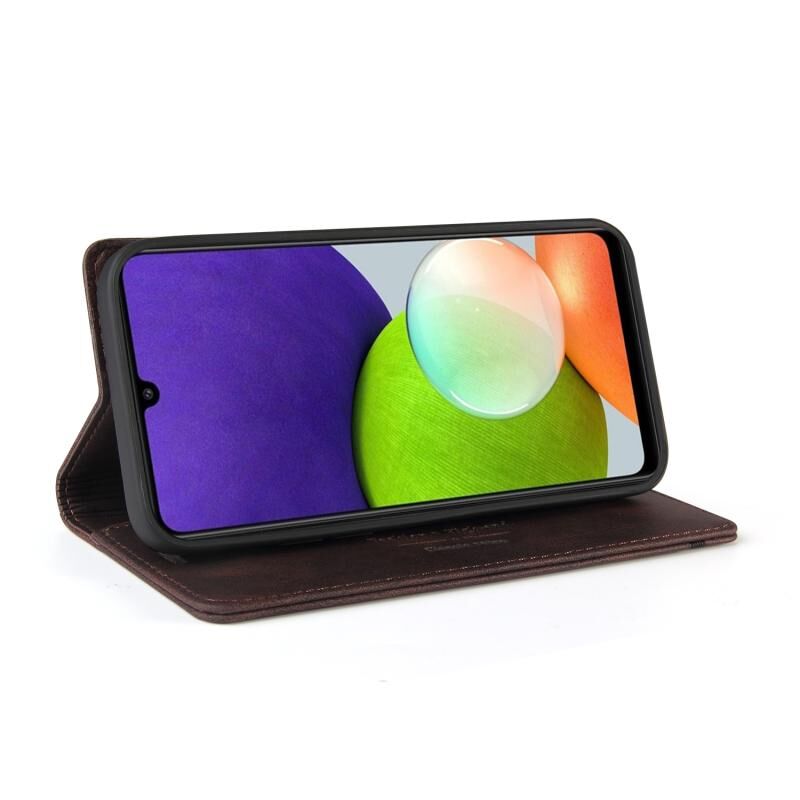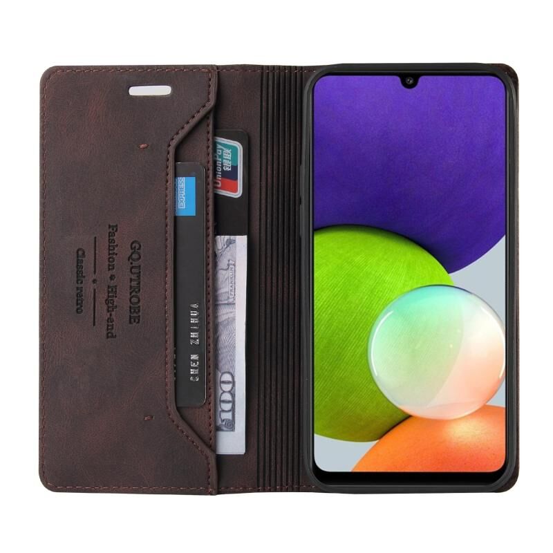 Για Samsung Galaxy A22 4G δέρμα αίσθηση Anti-theft βούρτσα οριζόντια Flip δερμάτινη θήκη με κάτοχο & υποδοχές για κάρτες & πορτοφόλι (Καφέ)