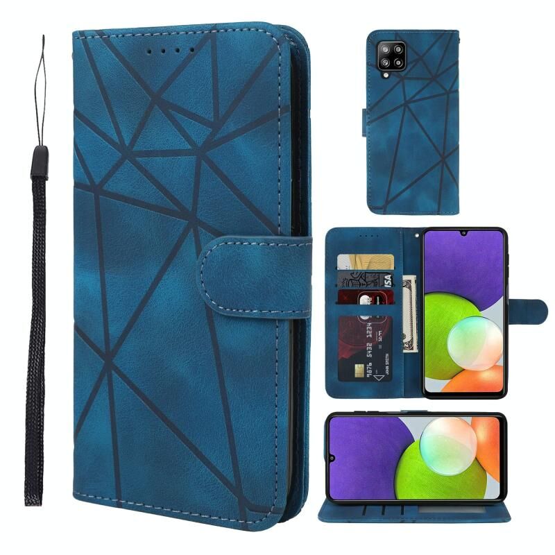 Θήκη τηλεφώνου Samsung Galaxy A22 4G με υφή δέρματος και γεωμετρικά σχέδια (Μαύρο)
