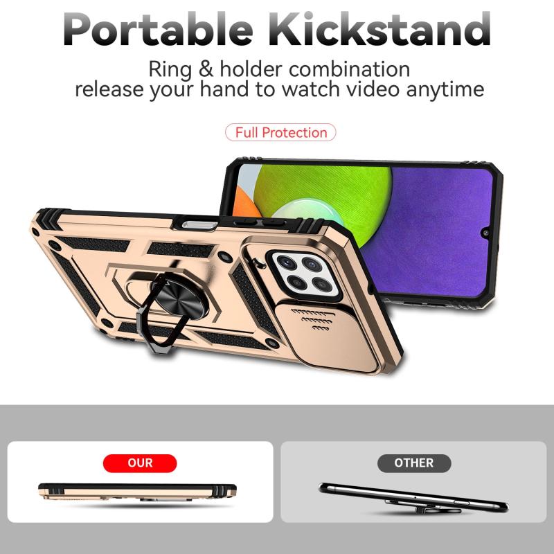 For Samsung Galaxy A22 4G Sliding Camshield Holder Phone Case(Gold)