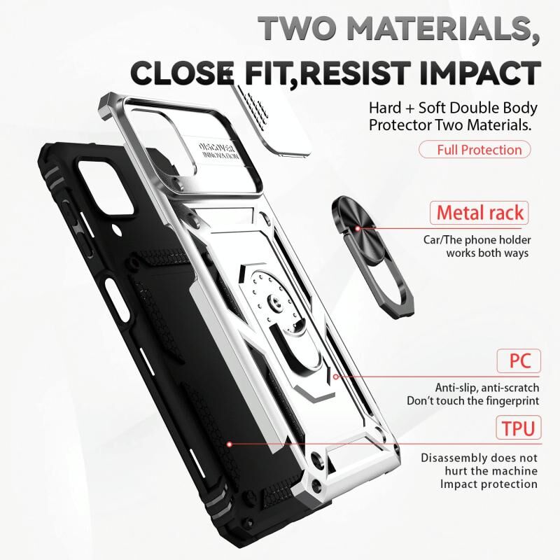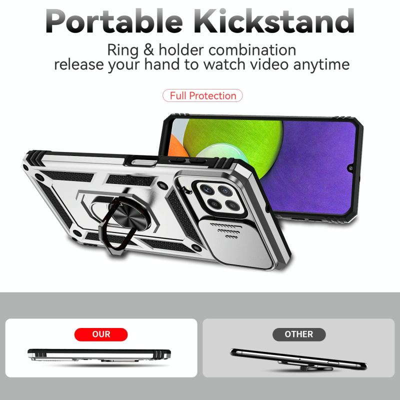 For Samsung Galaxy A22 4G Sliding Camshield Holder Phone Case(Silver)