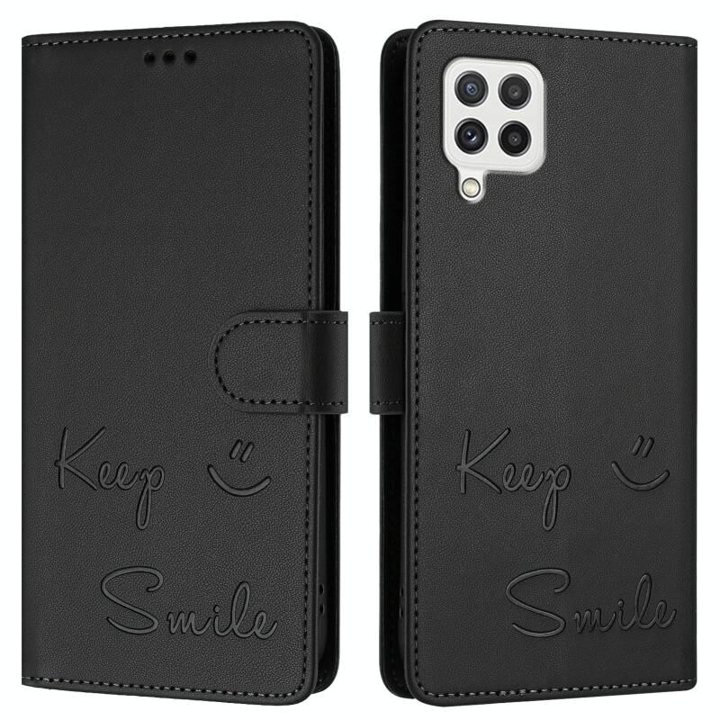 Για Samsung Galaxy A22 4G Smile ανάγλυφο RFID δερμάτινη θήκη τηλεφώνου (Μαύρο)