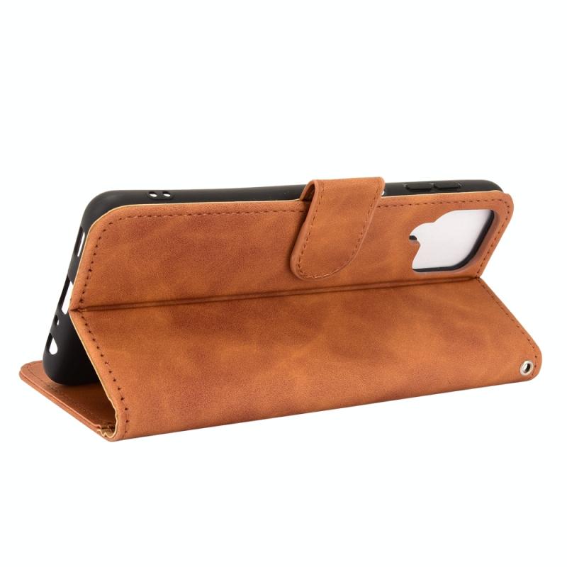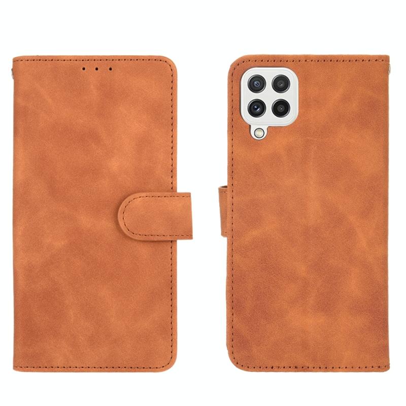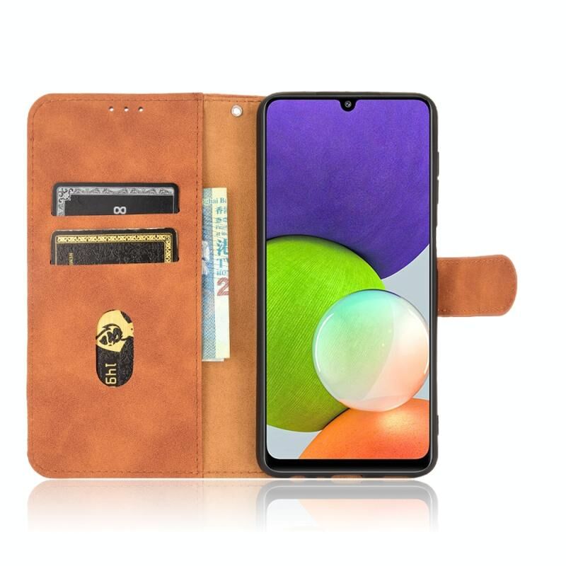 For Samsung Galaxy A22 4G Solid Color Skin Feel Magnetic Buckle Horizontal Flip Calf Texture PU Leather Case with Holder & Card Slots & Wallet(Brown)