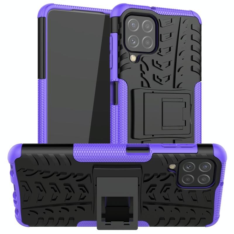 Για Samsung Galaxy A22 4G ελαστικών υφή Shockproof TPU + PC προστατευτική θήκη με κάτοχο (μωβ)