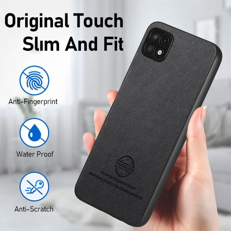 Για Samsung Galaxy A22 4G Twill ύφασμα δέρμα δέρμα πίσω θήκη τηλεφώνου (Μαύρο)