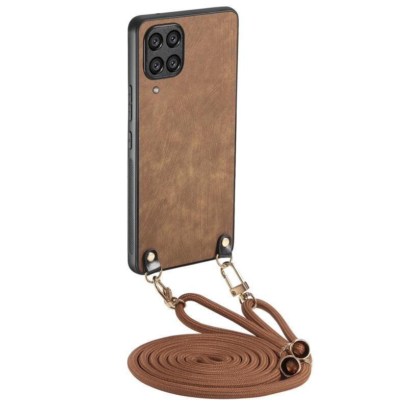 Για Samsung Galaxy A22 4G εκλεκτής ποιότητας δέρμα PC πίσω κάλυμμα τηλέφωνο υπόθεση με λουράκι σταυρού (καφέ)