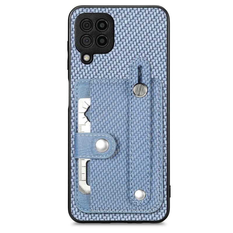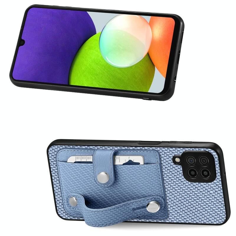 Για Samsung Galaxy A22 4G Wristband Kickstand Wallet Πίσω θήκη τηλεφώνου με μαχαίρι εργαλείο (μπλε)