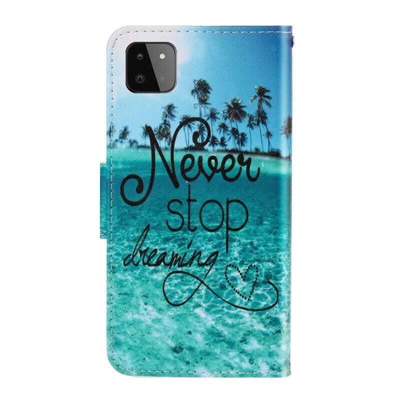 Θήκη τηλεφώνου Samsung Galaxy A22 5G 3D με έγχρωμο σχέδιο, οριζόντια αναδιπλούμενη από δέρμα με βάση στήριξης & θήκες για κάρτες & πορτοφόλι (Κόκκινο Στόμα Γάτας)