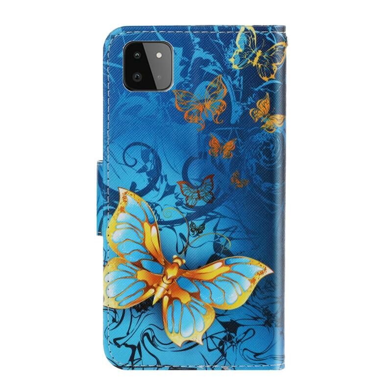 Θήκη τηλεφώνου Samsung Galaxy A22 5G 3D με έγχρωμη σχεδίαση, οριζόντια αναδιπλούμενη από δέρμα με βάση στήριξης & θήκες για κάρτες & πορτοφόλι (Κόκκινο)