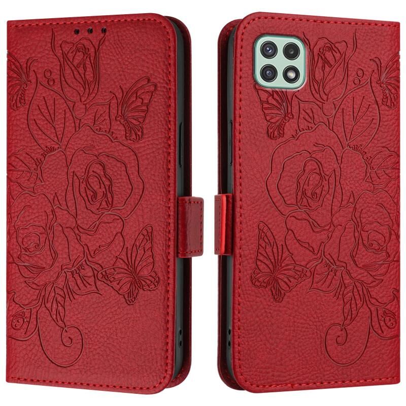 Για Samsung Galaxy A22 5G / A22s 5G / F42 ανάγλυφο Rose RFID αντικλεπτική δερμάτινη θήκη τηλεφώνου (κόκκινο)