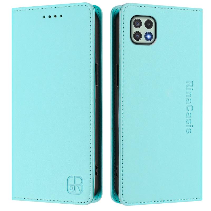 For Samsung Galaxy A22 5G / A22s 5G RC01 Dual-Folded Magnetic Suction RFID Leather Phone Case(Mint Green)